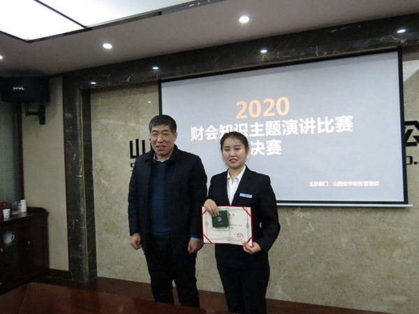 为增强公司员工对外形象和沟通能力,提高全体财务人员的个人素质,展现安华员工风采。近日,公司财务管理部在三楼会议室举办了财会知识主题演讲赛。